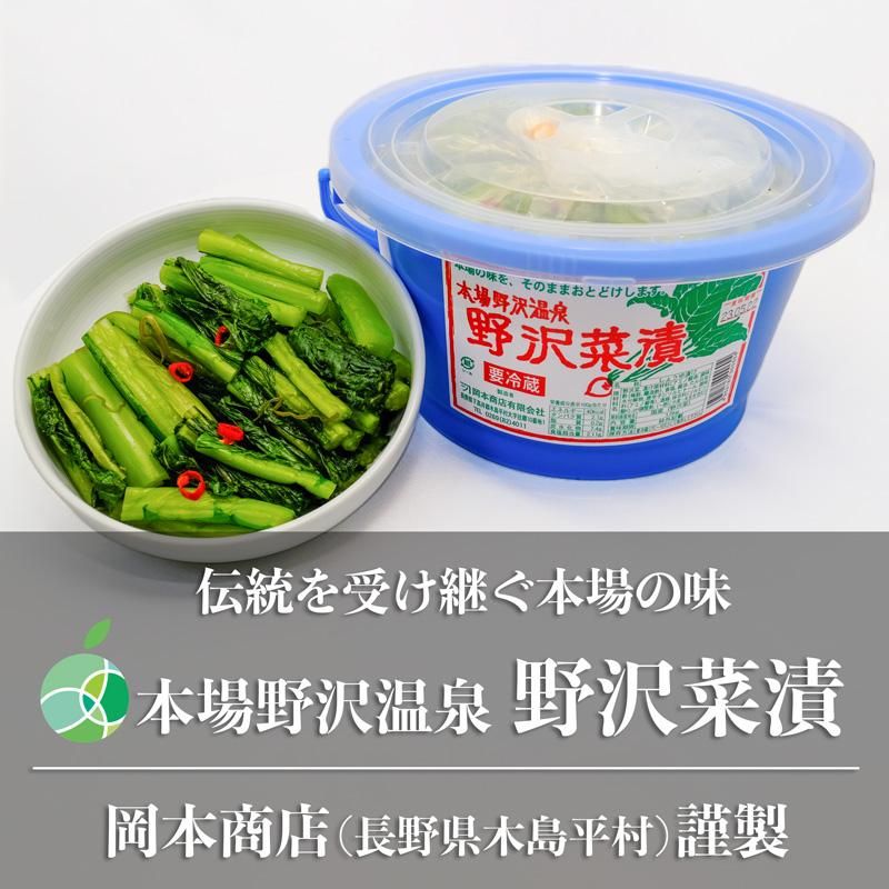 漬け物専門店・岡本商店の野沢菜漬です。野沢菜漬の本場である野沢温泉村や木島平村では、毎年12月から3月に2〜3メ−トルの雪が積もります。農作物は田畑に雪が積もっている期間は栽培できません。
